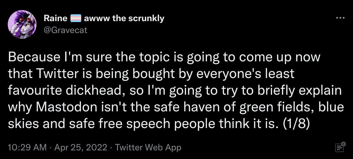 This isn't bad in itself but some communities can be more drama-prone than others – and you can absolutely find people being loud on Twitter about how Mastodon won't save us.